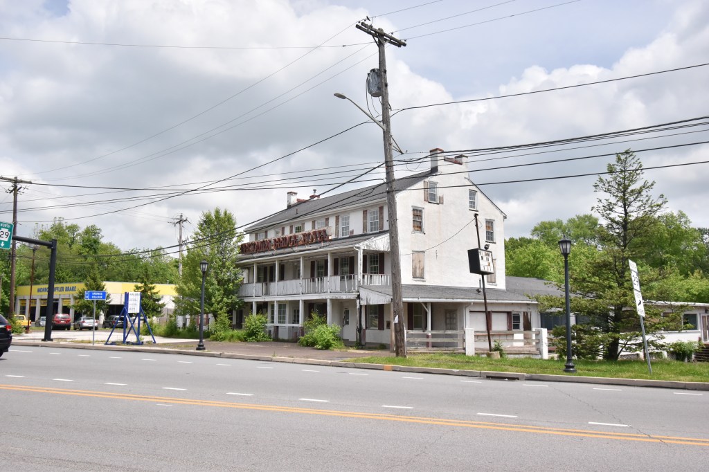 After moving through Trappe and down the hill to the Perkiomen Creek – in present-day Collegeville, the army crossed to the east side of the creek. The Perkiomen Bridge Hotel stands in disrepair at the bridge over the creek. Built around 1706 (I’ve also seen 1701), it was there when the army passed through, although I’ve been unable to find any reference to it related to the Philadelphia Campaign (although I didn’t look too hard). A permanent bridge of the Perkiomen was not built until 1799 and prior to that, the creek was crossed at Phillips Ford or over small, wooden bridges which did not survive. The army camped for the rest of the night at the Perkiomen. Exactly where is unknown, however in John Marshall’s “The Life of George Washington” he states that they camped on both sides of the creek until continuing towards the Schuylkill on the 20th of May.