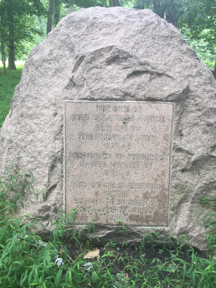 Also, Rich DeLeo on Facebook provided this photo of the historical marker in Valley Forge NP where Sullivan’s Bridge was located. This is close to the location of Fatlands Ford. The marker is on the East side of the river and can be accessed from the River Trail either from the Pawling’s Ford NPS parking area or the Betzwood NPS parking area.