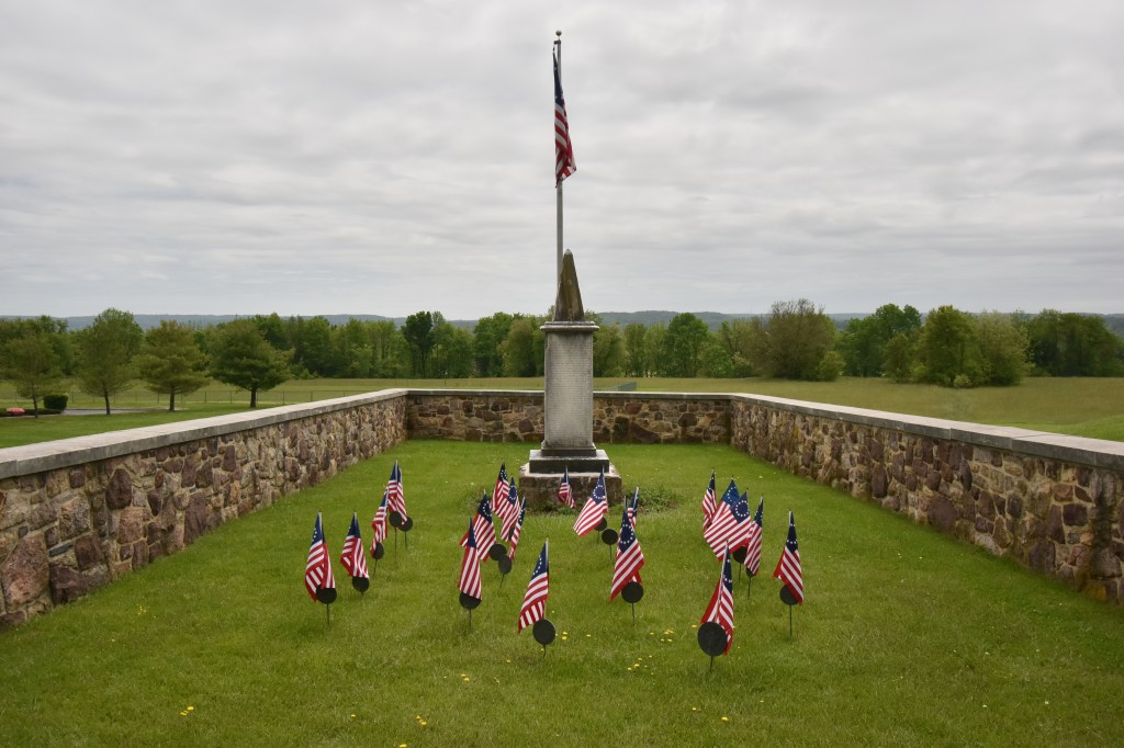 The first church on this site was a log cabin constructed in 1758 and was the building in existence during the fall and winter of 1777 & 1778 when it was used as a hospital. This building was torn down in around 1817 and a new church built, pictured here. This is one of two churches used as hospitals referred to as “French Creek” by the hospital department believed to be established in January, 1778; the other being Zion’s Evangelical Lutheran Church as short distance away. Immediately on Ridge Road sits the Revolutionary War grave site of soldiers that died at this church, located just up the hill. 22 unknown soldiers are interred here, and there are others believe buried in the church cemetery as well. A monument was erected in 1831 and stands here today.