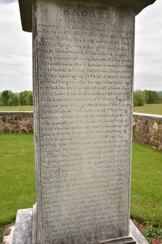 I’ve included pictures of Brownback’s Church since I’ve seen references of it used as a hospital, but haven’t yet been able to verify them. It’s also been suggested that units from the Continental Army camped near here on their way to Reading and Warwick Furnaces. There are many gravestones of Revolutionary War veterans and so I’ve included some of those gravestones. I’ve visited lots of AmRev cemeteries these are some of the most legible I’ve seen.