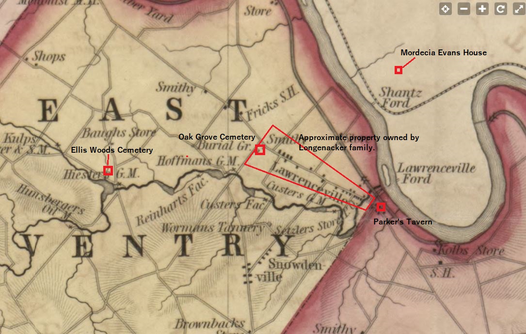 One property owner in Lawrenceville/Parker Ford was the Longenecker (or Longacre, or several other spellings) family located on the Coventry side of the area. As mentioned, Frederick Sheeder wrote that Susannah Longenecker’s barn also saw some Continental Army casualties, and tax records of 1798 list a Longenecker barn on the property.