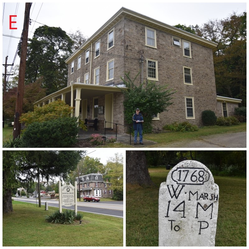 Photo E: Clifton House – Located on Bethlehem Pike to the rear of Fort Hill, Continental officers Quartermaster General Stephen Moylan and Colonel Clement Biddle were billeted here. This is not the original building present here at the time of the battle, having been destroyed by fire several times and rebuilt. It is the Historical Society of Fort Washington headquarters and museum (currently closed due to Covid). The building is owned by the PA State Department of Conservation and Natural Resources.